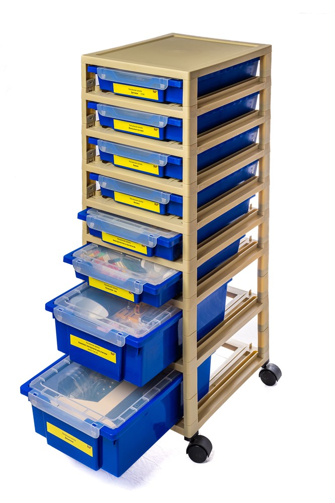 Для компактного размещения, хранения и транспортировки единовременно всех систем хранения с оборудованием в составе цифровой лаборатории предусмотрена мобильная стойка на колесах для размещения одновременно всех 8 систем хранения.