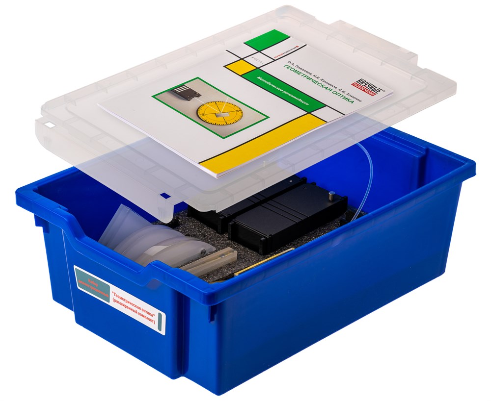 Набор демонстрационный позволит выполнить 32 эксперимента, рассматривающих распространение света в рамках геометрической оптики.